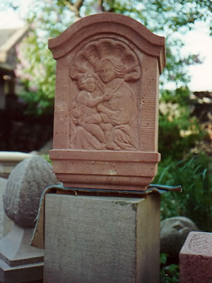 ![]() Sandsteintafel, in echtem Zinnober und Malachit gefasst |