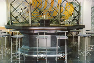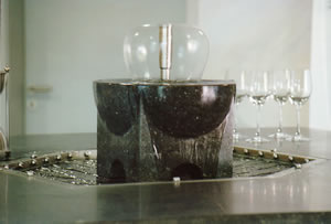 ![]() Vinothek im Weingut Dr. Robert Weil, Kiedrich: Weinprobiertisch mit Wasserspiel aus sog. Belgisch Granit und Edelstahl, 3 m x 1,5 m |